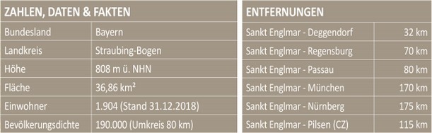 Der staatlich anerkannte Lufkurort und Wintersportplatz im Naturpark Bayerischer Wald verspricht Sommer wie Winter einen erholsamen und aktiven Urlaub in der herrlichen Mittelgebirgslandschaft des Bayerischen Waldes. Grüne Wiesen, sanfte Hügel und stattliche Berge kennzeichnen die Urlaubsregion im Sommer, die zu vielfältigsten Aktivitäten und zur Erholung einlädt. Im Winter bietet Sankt Englmar herrliche Skiabfahrten, gepflegte Langlaufloipen, geräumte Winterwanderwege und eine herrlich verschneite Mittelgebirgslandschaft.